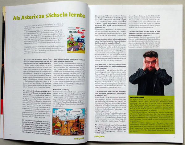 - Ausgabe 136 (Herbst 2020): Fünfseitiges Interview mit dem Ruhrdeutsch-Übersetzer Hennes Bender unter dem Titel: "Als Asterix zu sächseln lernte" anlässlich des Erscheinens des Bandes "Asterix auf Ruhrdeutsch 6: Keine Kohle mehr im Pott".