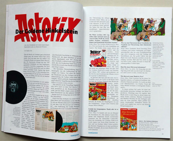 - Ausgabe 90 (Oktober 2005): Ausgabe mit Titelthema Asterix zum bevorstehenden Erscheinen des 33. Bandes. Enthalten ist der sechsseitige Artikel "Der neue Asterix - Das globale gallische Dorf" zum Stellenwert von Asterix in Kultur und Kommerz, den Festivitäten in Brüssel zum Erscheinen des neuen Bandes und (sehr spärlichen) ersten Informationen zu diesem. Zudem ist ein einseitiges, mit "Asterix ist für den Übersetzer ein echter Drahtseilakt" betiteltes Interview mit dem damals neuen deutschen Asterix-Übersetzer Klaus Jöken enthalten. (Abbildung unten).