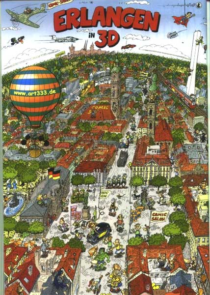 Zum Comicsalon 2008 in Erlangen wurde in der Comixene 103 ein 3D Wimmelbild mit dem Titel "ERLANGEN in 3D" abgebildet. Neben vielen anderen Figuren ist auch eine Anspielung auf Asterix und Obelix enthalten.