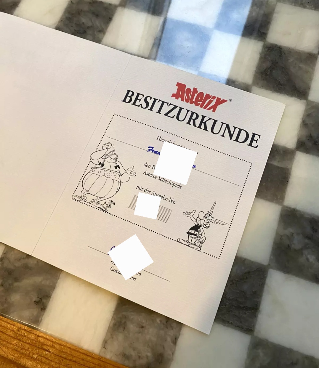 Arnd hat geschrieben: 8. Juni 2024 14:38 Wie erkennt man denn da, welche Comicfigur welcher Schachfigur entspricht? Majestix, Cäsar, Gutemine, Kleopatra kann man erraten. Troubadix' Baumhaus ist wohl ein Turm? Und die anderen?