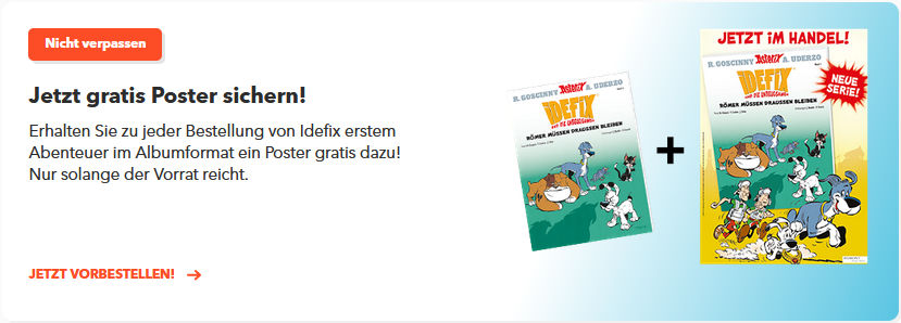 die Unterscheidung zwischen Asterix- und Idefix-Beilagen erschließt sich mir insoweit nicht. Es sind Beilagen zu einem Asterix-Produkt. Alle Idefix-Bücher werden als solche behandelt.Comedix hat geschrieben: 20. Oktober 2024 10:18Bei den Idefix-Beilagen-Postern möchte ich wieder eine Grenze ziehen. Tatsächlich sind sie für mich reine Marketing-Instrumente, deren Sammlerwert, und damit die Aufnahme in die Bibliothek zu diesem Zwecke, ich stark bezweifle.