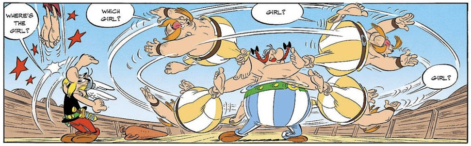Noch ein Tipp: Wir können nicht sagen, ob es sich um einen Gallier oder einen Angehörigen eines anderen Volks handelt, da er Teil einer sozialen Gruppe ist, die in der Asterix-Welt sozusagen eine Sonderrolle einnimmt.