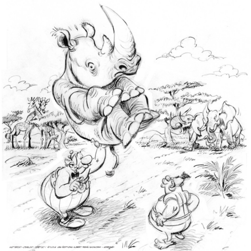 damit Obelix in dem Filmplakat das Nashorn halten kann, hat man seinen Arm aber kräftig verlängert, oder? Wenn er den nach unten hängen lassen würde, müsste der ja im Stehen den Boden erreichen.