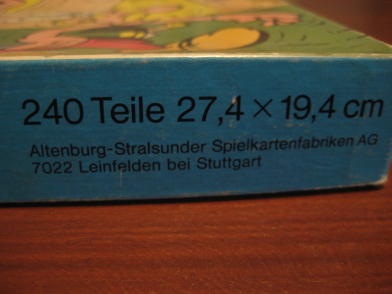 zumindest als Text, dass 1973 auch Puzzle mit 240 Teilen erschienen sind, im Format 27,4 x 29,4 cm und das zwei Motive bekannt sind,