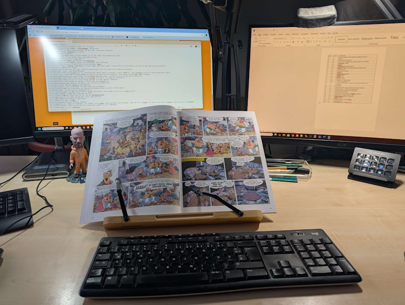 Das wäre schön. Nein, das ist ein Buchhalter aus Holz mit zwei Klammern aus Metall, damit die Seiten nicht von alleine umblättern.Iwan hat geschrieben: 23. Oktober 2025 18:41 Oh, edel! Dann musst du den Text nicht abtippen, sondern kannst ihn direkt mit diesen Stiften übernehmen?